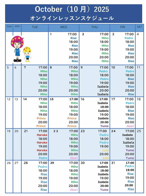 →1回 40分 毎週 火, 水, 木, 金 曜日 17, 18, 19, 20時〜